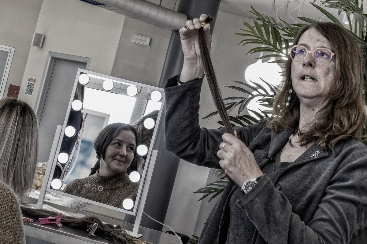 Una tricotecnica esperta ha poi illustrato le modalità con cui deve avvenire il taglio affinché sia possibile realizzare delle parrucche secondo le necessità e i desideri dei pazienti. Perché la bellezza aiuta a guarire e la solidarietà anche!