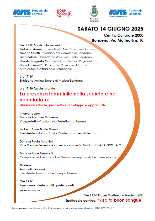 Non serve ricordare che il sangue non si fabbrica in laboratorio e che il contributo volontario e gratuito dei donatori è fondamentale. Lo è anche nella misura in cui permette alla scienza di fare sempre passi avanti: infondo la Giornata Mondiale dei Donatori di Sangue si festeggia il 14 giugno per ricordare il compleanno di Karl Landsteiner, il medico austriaco che ha scoperto i gruppi sanguigni AB0 e il fattore Rh. Questo dimostra ancora una volta che il progresso, anche quello medico scientifico, è il risultato della ricerca ma anche del contesto sociale in cui essa avviene. I donatori ne sono uno straordinario esempio, soprattutto in questi tempi particolarmente segnati da violenza e prevaricazione.Roberto Pasini