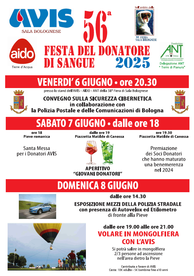 Nella giornata dedicata ai donatori di sangue e plasma, sono molti gli eventi organizzati dalle sedi dell'Emilia-Romagna per festeggiare questo grande gesto di altruismo. Ecco le principali iniziative.